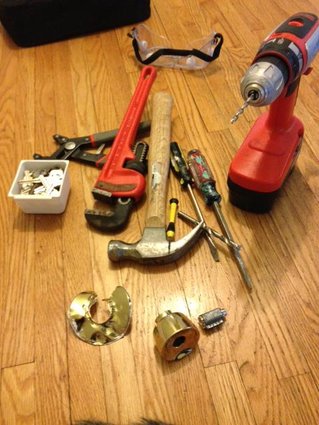 Being a creative problem solver. Problem? Kitty locked in office (no key). Creative solution? After exhausting all other methods (try every key in house, credit card between door and frame, lock picking, screwdriver wedged into lock, drilling out lock) and failing to open door, beat the crap out of the door knob until the sucker comes off.