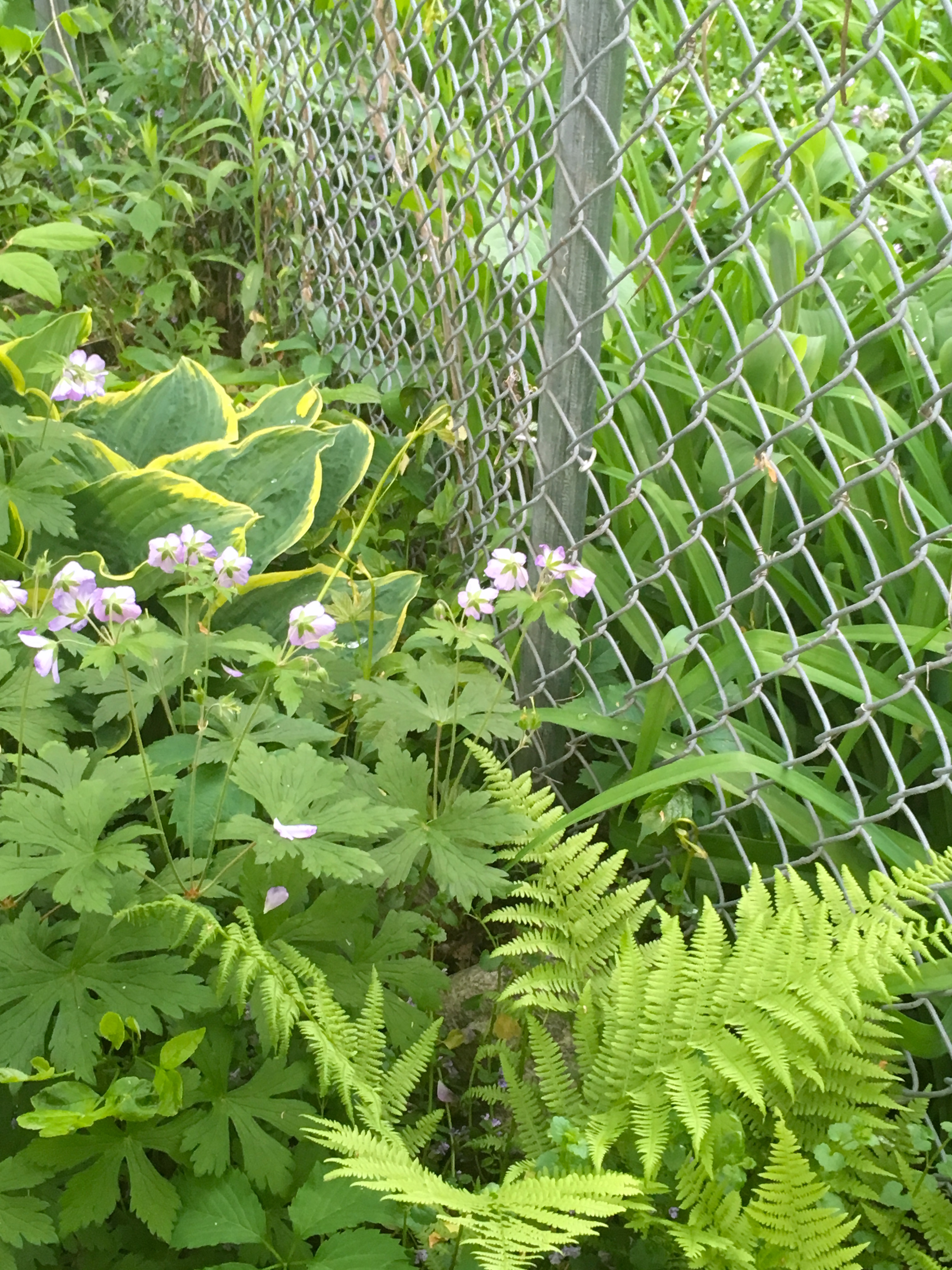 ferns geraniums and hostas may 2017