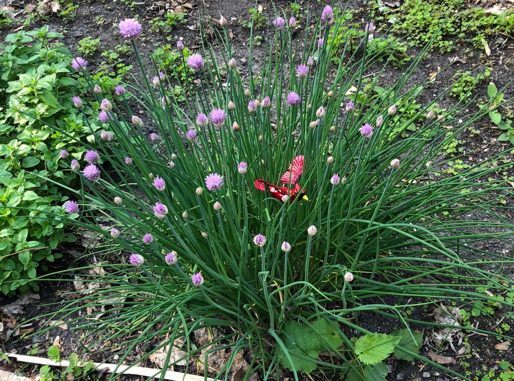 And I appreciate that our allium and chives and peas are growing. Our weigela and clematis are blooming.